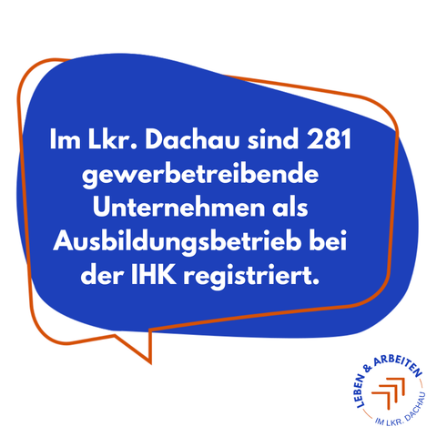 Von den gewerbetreibende Unternehmen mit Hauptsitz im Landkreis Dachau sind 281 als Ausbildungsbetrieb bei der IHK registriert.Die Stadt Dachau führt mit 90 gemeldeten Ausbildungsbetrieben, gefolgt von Karlsfeld mit 44 Ausbildungsbetrieben und Bergkirchen mit 40 Ausbildungsbetrieben.Ein Dank an das Engagement unserer Unternehmerinnen und Unternehmer für die Ausbildung junger Talente und die Stärkung unserer Wirtschaft.